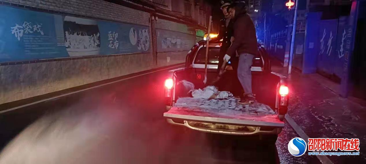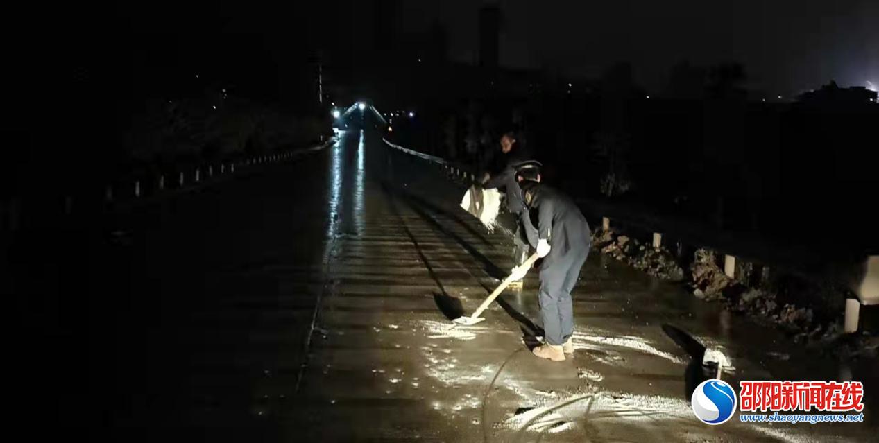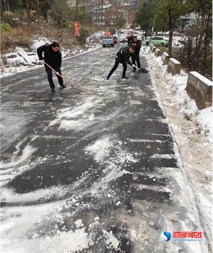 25日晚上,气温骤然降至到零度,小伙伴们根据天气预报都翘首期盼着大雪来临,而邵阳县城管局却在连夜召开会议提前实施预案,害怕深夜街道结冰,影响第二天车辆及行人的安全,为防患于未然,晚上10时,全体队员被通知紧急加班,穿戴整齐对城市的各个上下坡道进行撒盐、铺麻袋防滑……