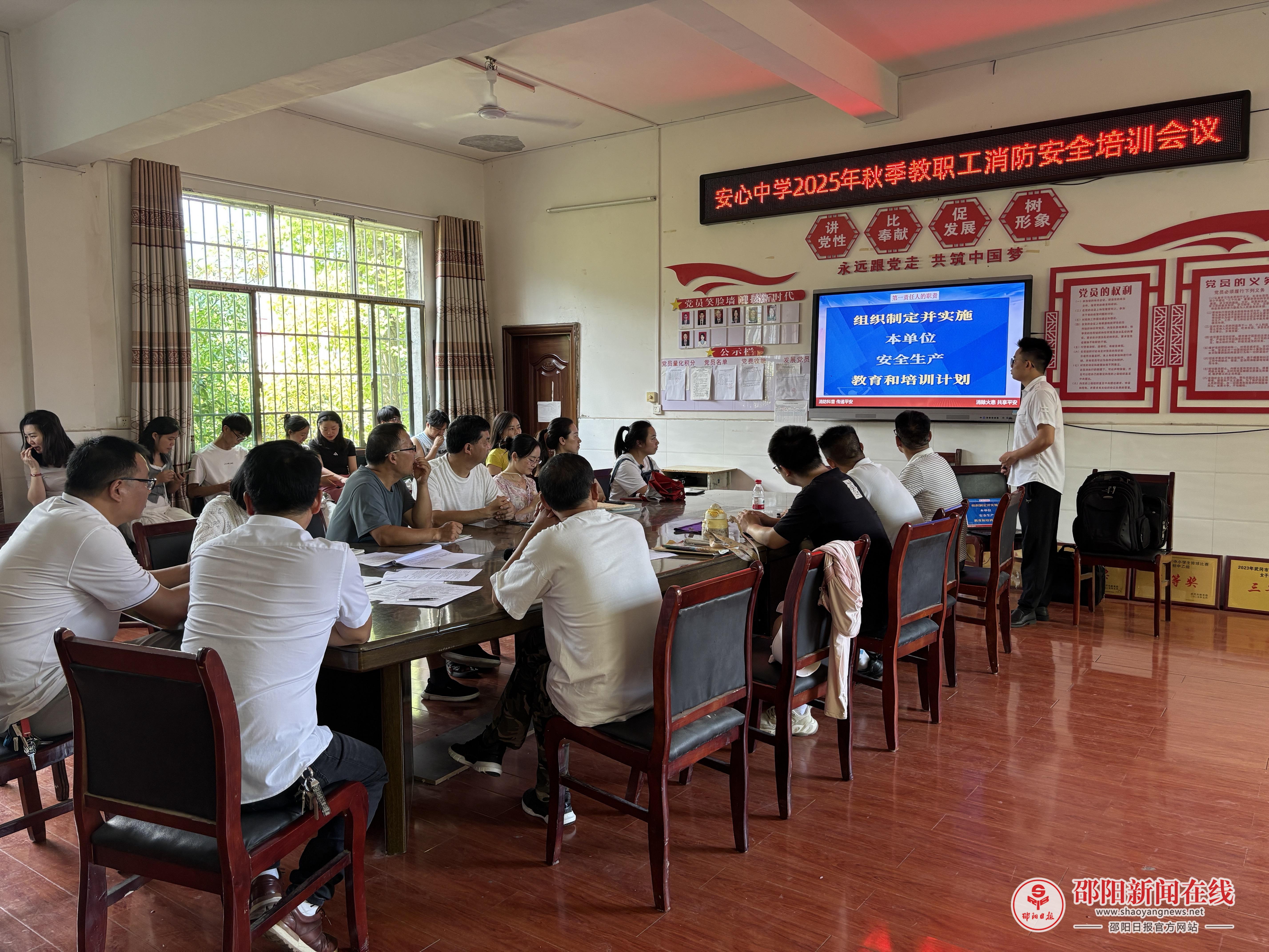 邵阳日报·邵阳新闻在线讯(通讯员 杨贵玉)10月9日上午,邵湘安消防走进武冈市文坪镇安心中学,开展“2025年消防安全知识”专题教育活动。活动通过知识讲解、模拟演练、器材体验等形式,为全校所有教师、安保人员、食堂工作人员带来一堂生动的“生命安全教育课”。
