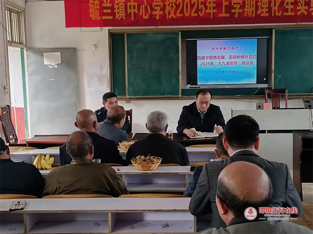 邵阳日报·邵阳新闻在线讯(通讯员 黄鸣)在一年一度的重阳佳节来临之际,为弘扬中华民族尊老、敬老、爱老的传统美德,表达对退休教职工的深切关怀与崇高敬意,10月29日上午,洞口县毓兰镇中学在多媒体教室召开了“霞披夕阳情无限·霜染秋枫叶正红”重阳节座谈会。该校领导班子成员与十余位退休教职工欢聚一堂,共话教育情怀,共庆重阳佳节。