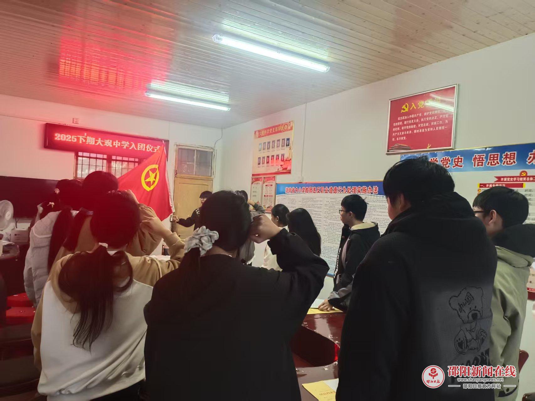邵阳日报·邵阳新闻在线(通讯员 钟炜玲)11月6日,隆回县岩口镇大观初级中学校园里国歌嘹亮,团旗飘扬,一场庄严而热烈的入团仪式在此举行。通过层层选拔的学子,在师长的见证下正式加入中国共产主义青年团,开启了他们的青春新征程。