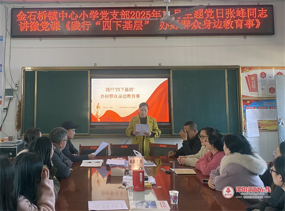邵阳日报·邵阳新闻在线讯(通讯员 陈甫春 贺美姣)11月27日,隆回县金石桥镇中心小学党支部以党日活动为契机,深入开展“一月一课一片一实践”活动,筑牢理想信念。