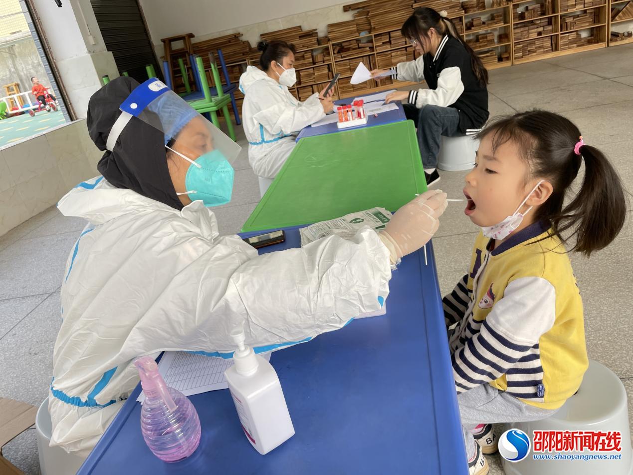 邵阳新闻在线讯(通讯员 彭湘姣)为充分发挥核酸检测在常态化疫情防控工作中的重要作用,及时排查消除幼儿园内疫情防控风险隐患,根据上级疫情防控部门统一安排部署,10月24日上午,洞口县黄桥镇中心幼儿园幼儿园全体师生进行了本月第三次核酸检测。