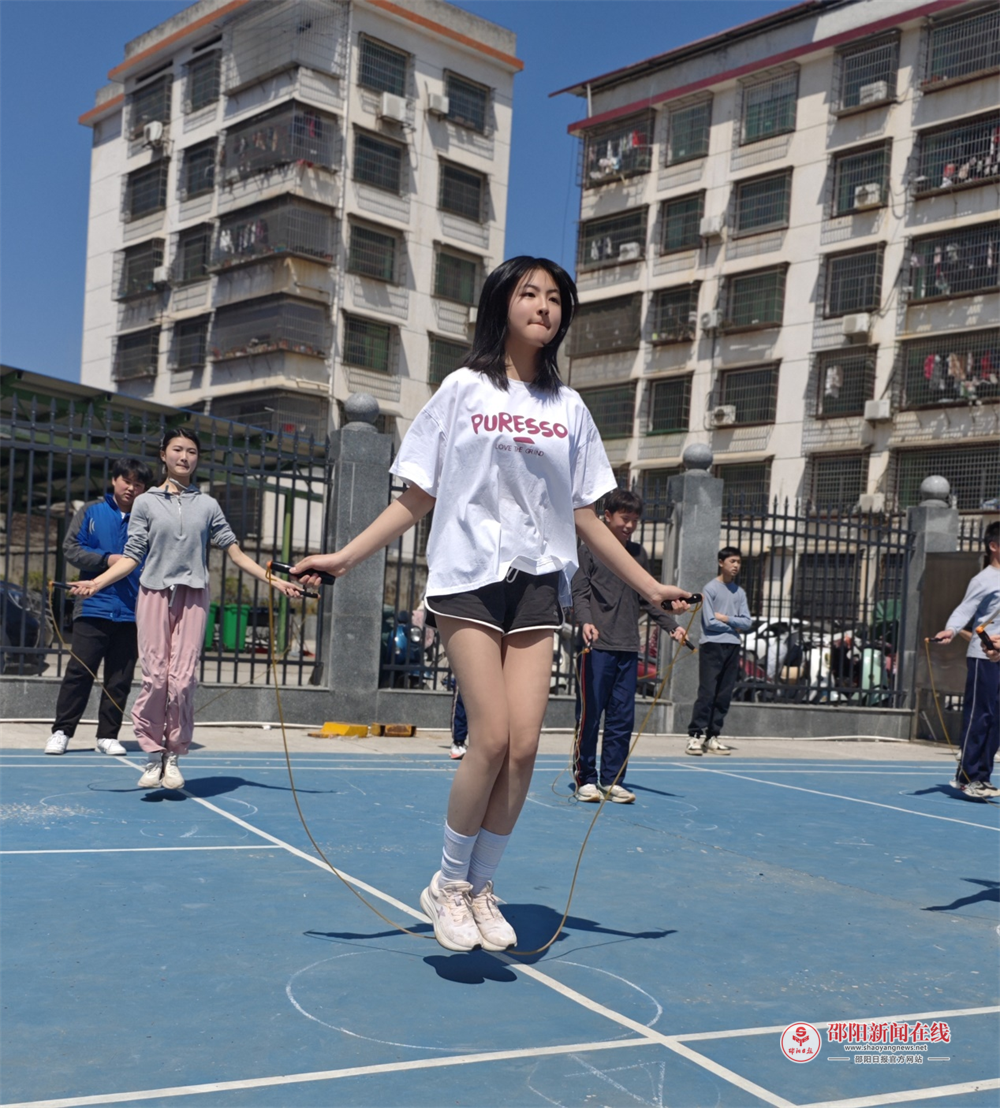 模拟测试现场,师生共同展现昂扬斗志:体育教师全程指导三项运动技巧,校园内助威声此起彼伏。少年迎风跃起的身影,是青春以拼搏之名在春光里定格的模样。