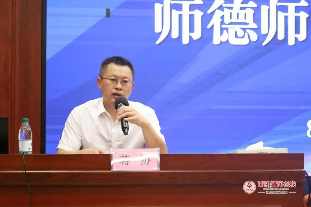 新宁县教育局党组成员、总督学蒋协和学校督导室唐吉林主任分别作师德师风专题教育。强调,教师要以德立身、以德立学、以德施教、廉洁纯教,坚守教育初心,担当育人使命,做学生为学、为事、为人的示范。在人工智能时代更要注重教育温度,做学生成长的引路人。