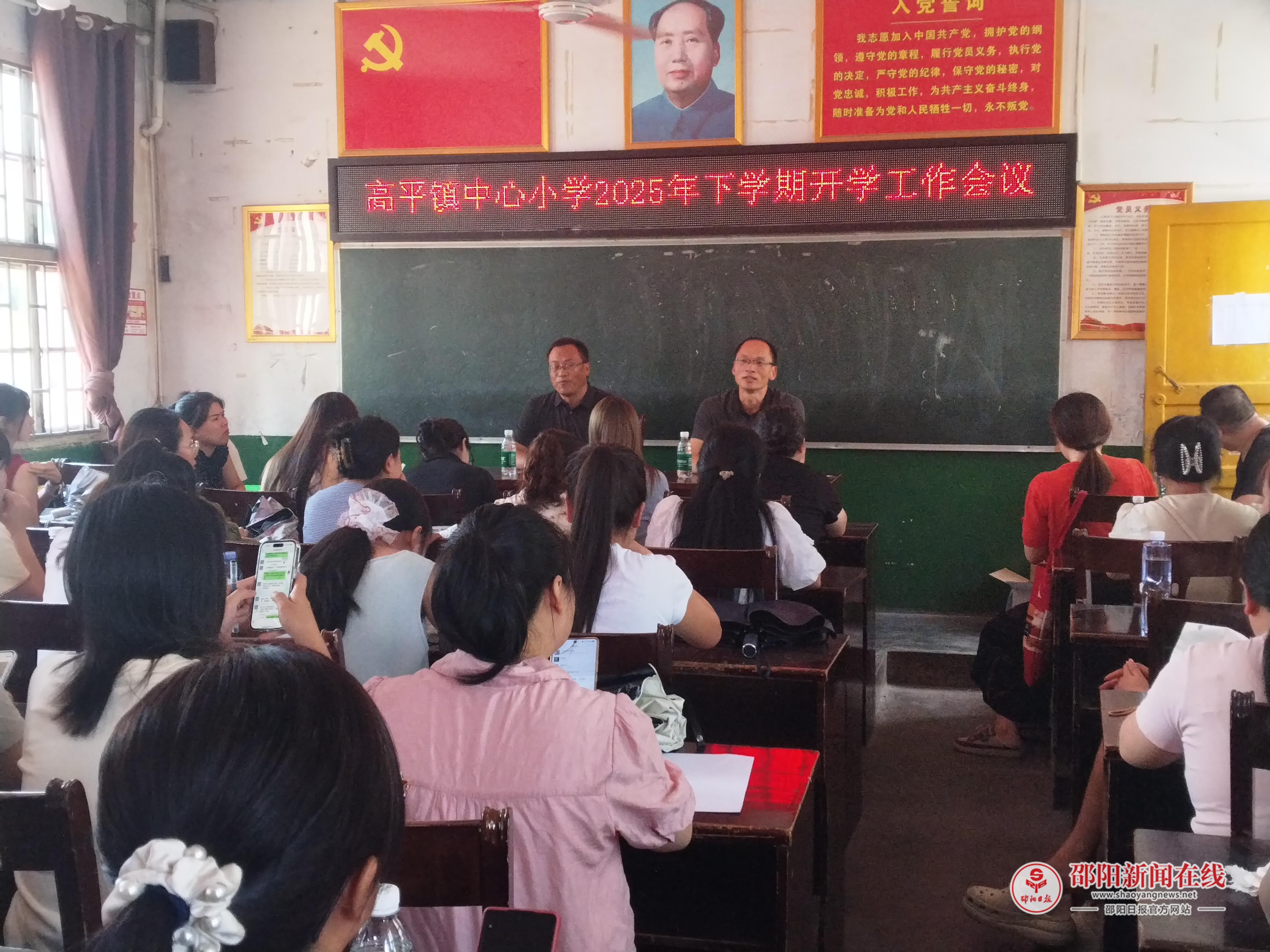 邵阳日报·邵阳新闻在线讯 (通讯员 袁愈辉 刘蓓) 8月26日,隆回县高平镇中心小学领导召集全体教师在会议室召开了2025年秋季学期开学工作会,高平镇中心学校教学副校长彭正波出席会议。