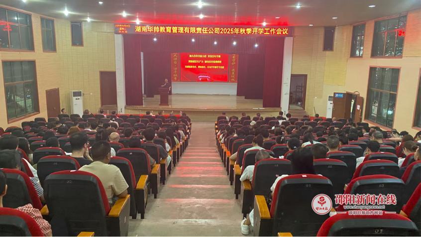 8月26日晚19时,邵东华帅总校全体教职员工会议在学校报告厅成功举行。会议的主题是“加大改革力度,建设百年华帅;创新是生产力,赓续荣光,敢博必胜;深耕精准教育、靶向教育,让每个华帅学子出彩”。华帅总校负责人作了《砥砺前行,破局而立,拥抱变革中的民办教育新时代》主题报告。该报告真实而客观地总结了2025年上期取得的骄人成绩:邵东经纬学校和邵东创业科技中等职业技术学校均被评为优秀等级。