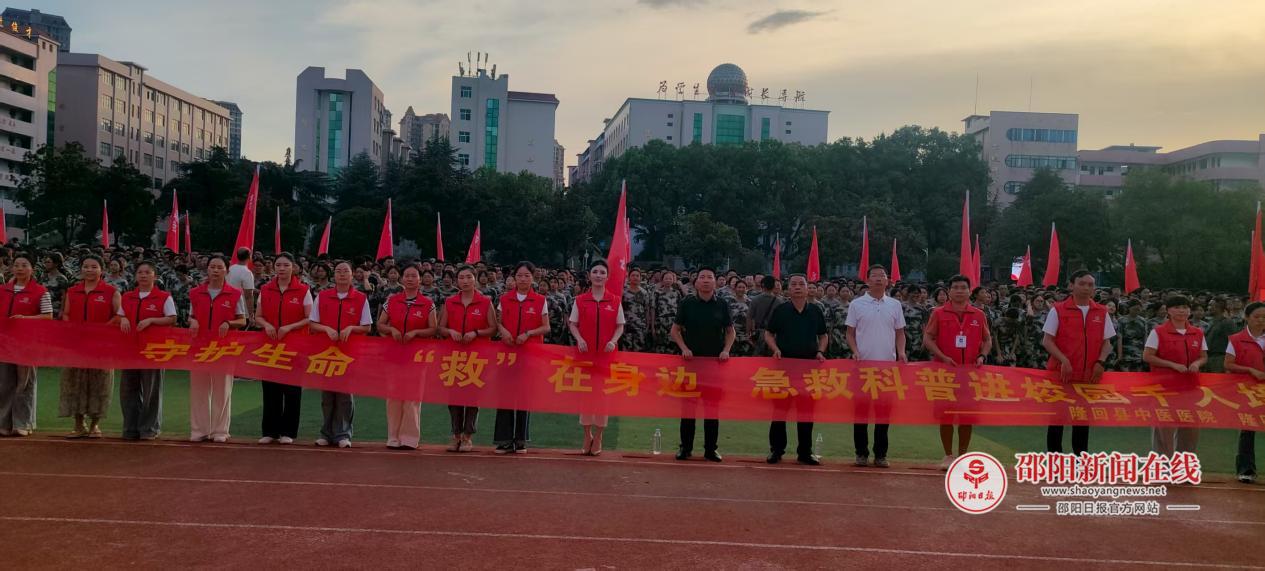 邵阳日报·邵阳新闻在线讯(通讯员 阳放 王婷 陈定球 谢博)8月26日下午,隆回县中医医院、隆回县金银花志愿者协会的专业医护人员,在学校田径场为全体高一学生开展了一场“守护生命,‘救’在身边”为主题的急救科普活动。