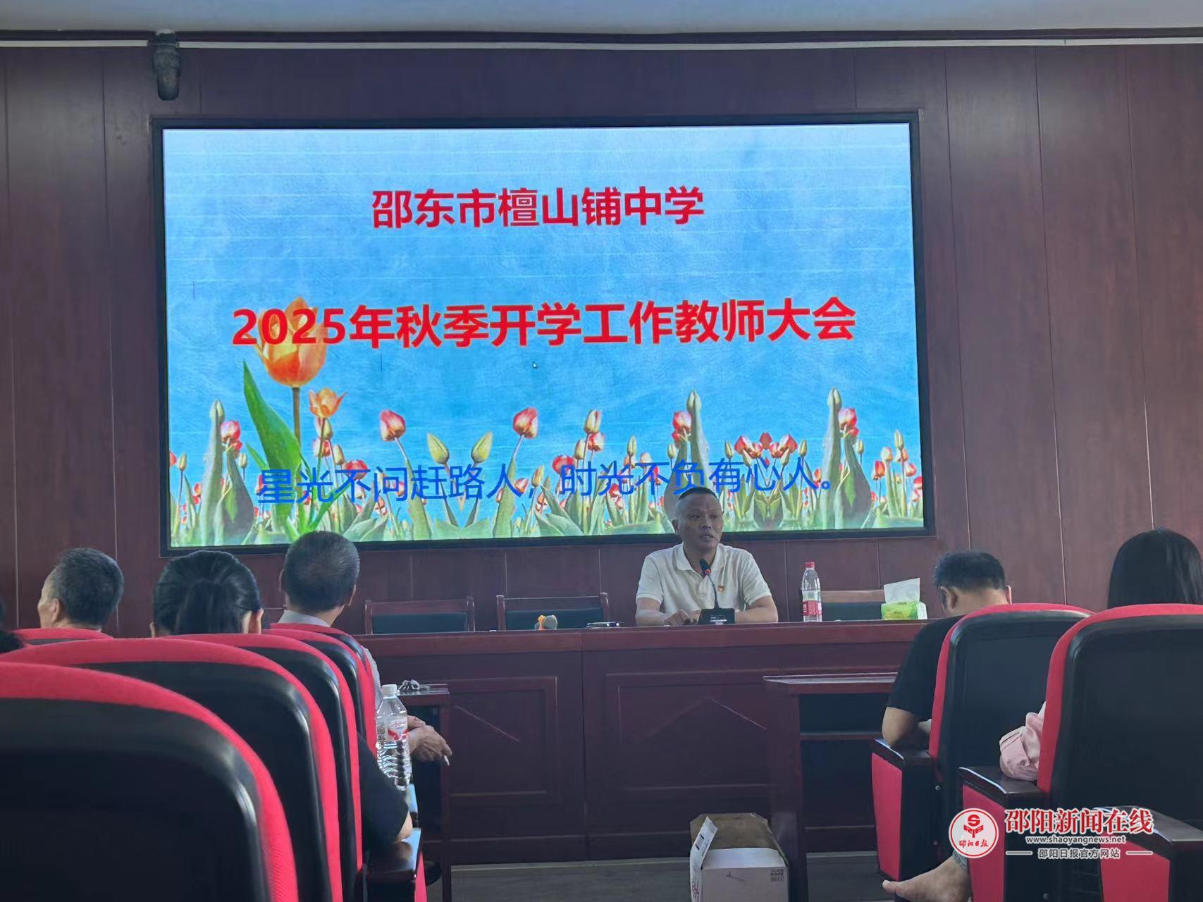 邵阳日报·邵阳新闻在线讯(通讯员 李巧敏)8月29日,邵东市檀山铺中学在学校会议室召开了2025年秋季开学工作教师大会,全体教师以饱满的精神状态参会。