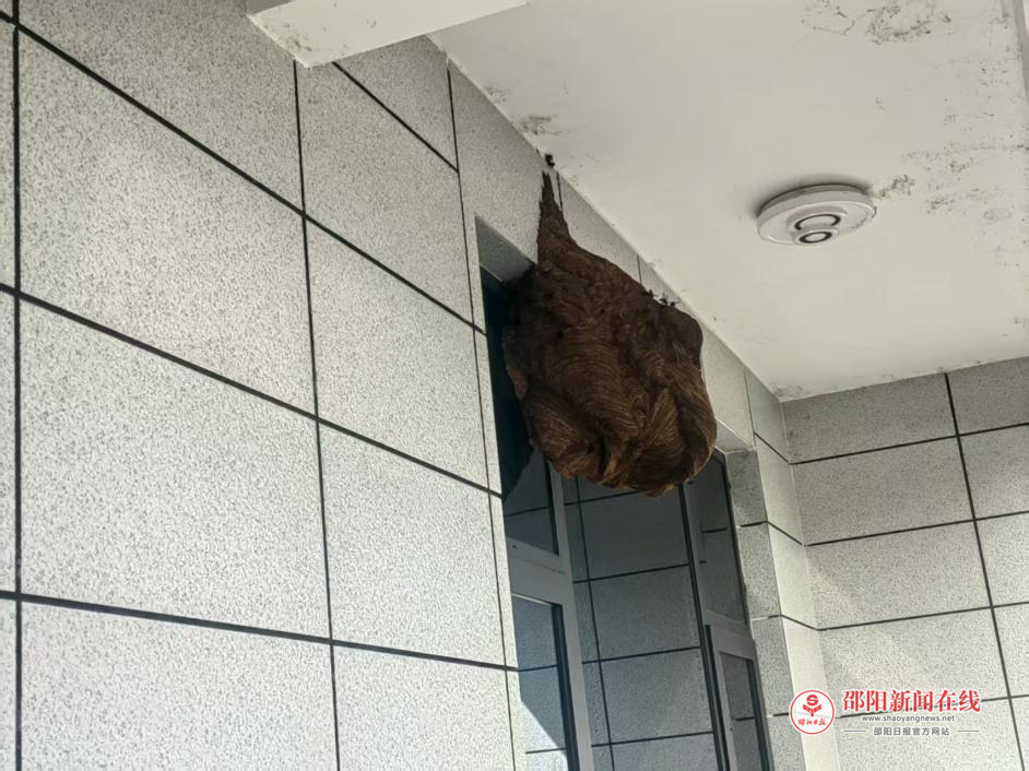 当天16时,该镇专职消防队接到桐木桥村村民求助,称其家中屋檐下发现一个直径约40厘米的马蜂窝,成群马蜂频繁进出,严重威胁家人和邻居的人身安全。