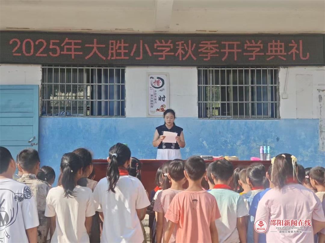 邵阳日报·邵阳新闻在线讯(通讯员 陈婷 段芳理)9月2日上午,武冈市晏田乡大胜小学在教学楼前坪举行开学典礼。