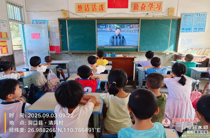 邵阳日报·邵阳新闻在线讯(通讯员 刘岚清)9月3日上午,洞口县黄桥镇清风小学全体师生齐聚校园,准时收看了纪念中国人民抗日战争暨世界反法西斯战争胜利80周年大会阅兵仪式直播。天安门广场上,歼击机呼啸而过,坦克隆隆前行;千里之外的黄桥镇清风小学教室里,孩子们目不转睛地盯着屏幕,见证着这场纪念中国人民抗日战争暨世界反法西斯战争胜利80周年的盛大阅兵。