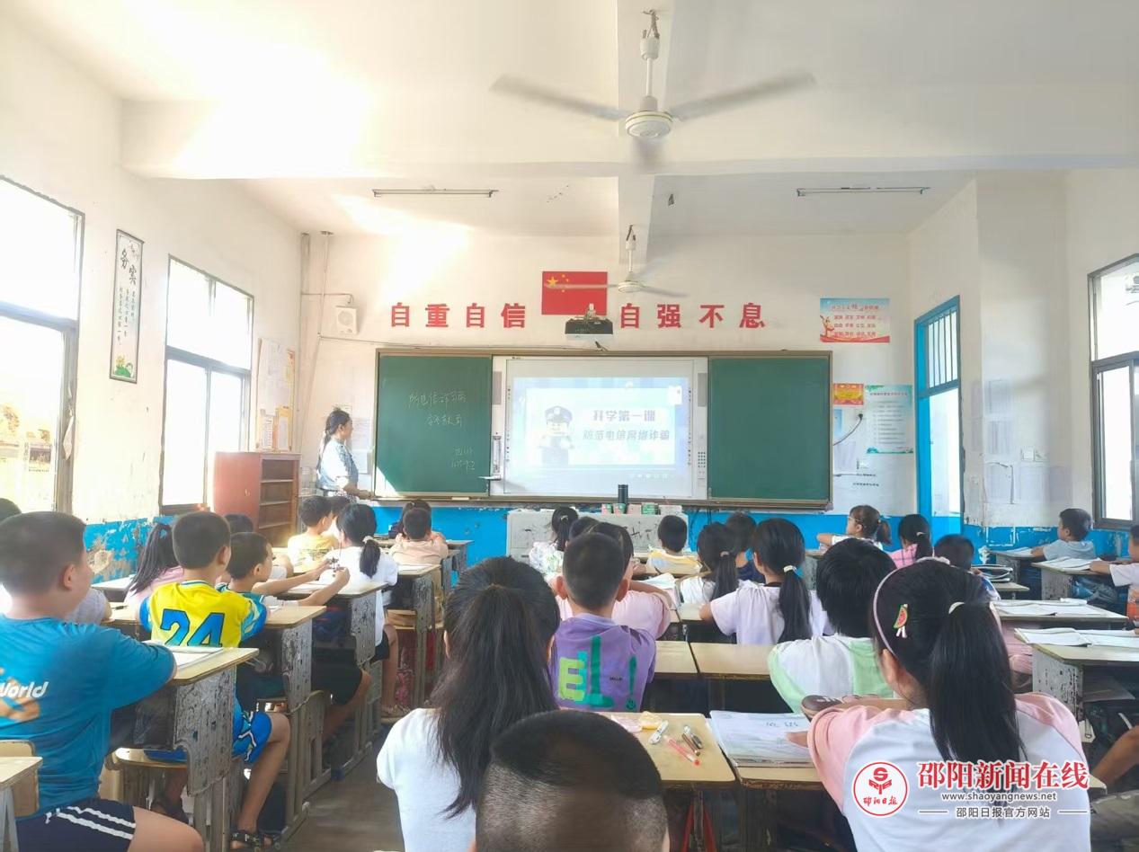 邵阳日报·邵阳新闻在线讯(通讯员 刘佳宁)9月3日,新宁县水庙镇中心小学全体师生齐聚校园,开展以“防范电信网络诈骗”为主题的“开学第一课”。
