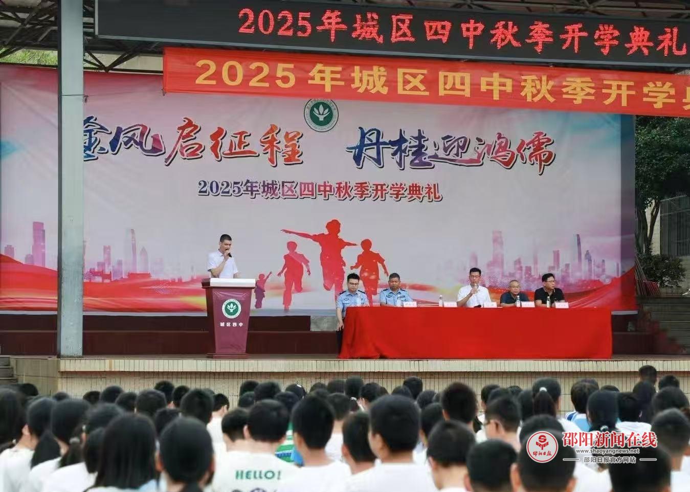 邵阳日报·邵阳新闻在线讯(通讯员 彭志 李敏)9月4日上午,邵东市城区四中师生齐聚操场,举行2025年秋季开学典礼,开启新学年征程。典礼由政教副校长吴军民主持。