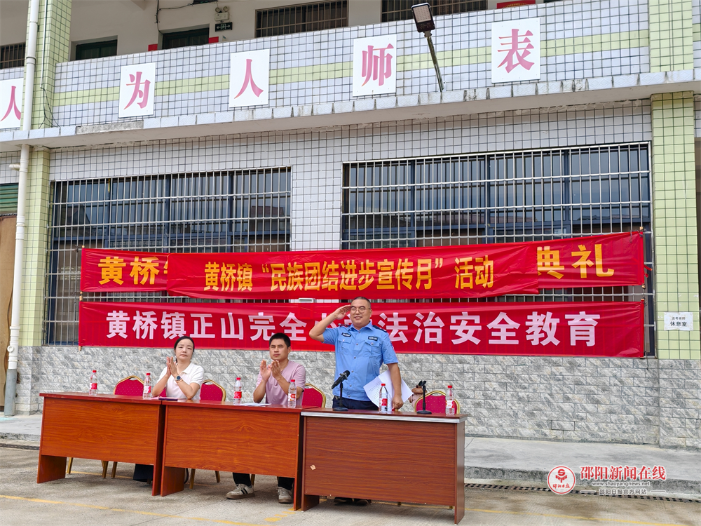 邵阳日报·邵阳新闻在线讯(通讯员 蒲芳林)9月9日,洞口县黄桥镇正山完全小学举行了开学典礼暨法治安全教育宣传活动,活动以庄严的升国旗、唱国歌仪式开篇。