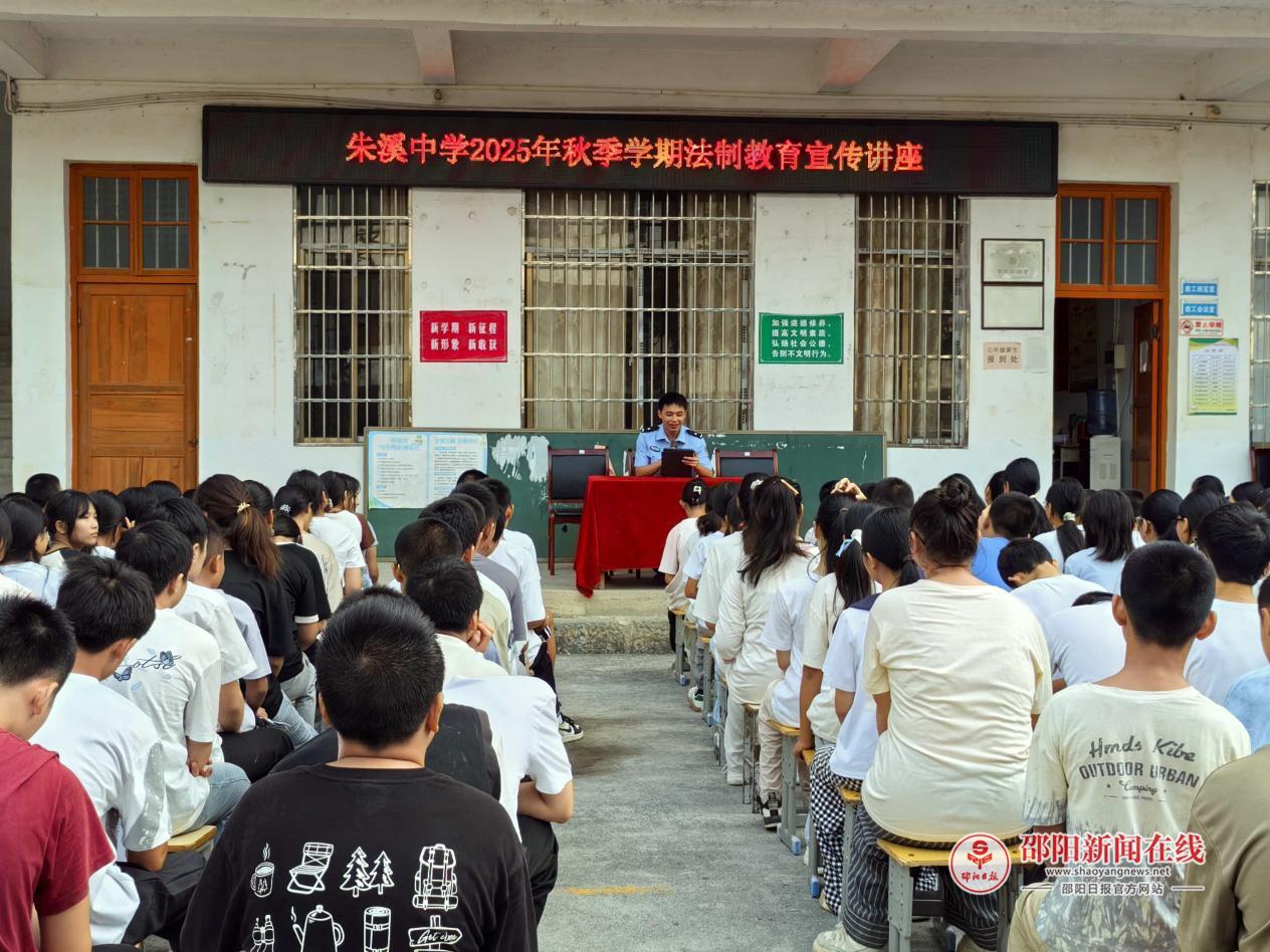 邵阳日报·邵阳新闻在线讯(通讯员 周艳芳)9月8日上午,武冈市荆竹铺镇朱溪中学邀请荆竹铺镇派出所民警肖警官,为学生开展法制教育宣传讲座。