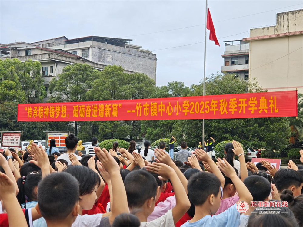 邵阳日报·邵阳新闻在线讯(通讯员 游慧敏)9月10日上午,洞口县竹市镇中心小学全体师生精神抖擞,齐聚学校大操场,举行了以“传承精神铸梦想,砥砺奋进谱新篇”为主题的秋季开学典礼。