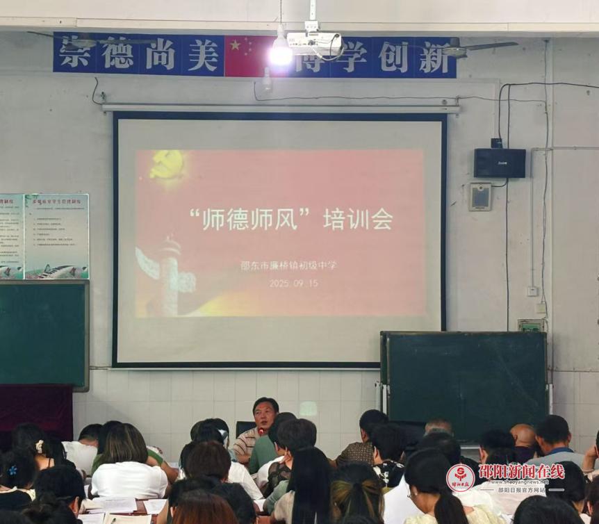 邵阳日报·邵阳新闻在线讯(通讯员 邓宇薇)近日,邵东廉桥镇初级中学组织召开师德师风建设会议,以高标准、严要求筑牢师德防线,以真行动、实举措涵养教育新风。