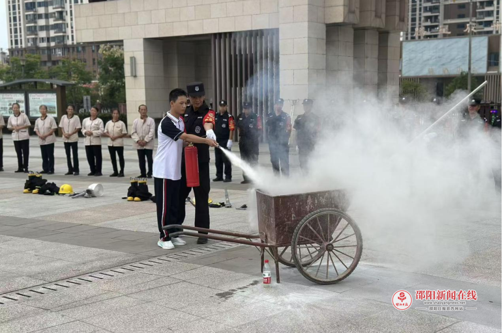 为进一步强化师生们的消防安全技能,学校安保人员还详细讲解演示了灭火器的使用方法,并邀请部分学生进行实操体验。学生们积极参与,在实践中掌握了灭火器“一提、二拔、三握、四压”的正确操作步骤,切实提升了消防安全意识和自防自救能力。