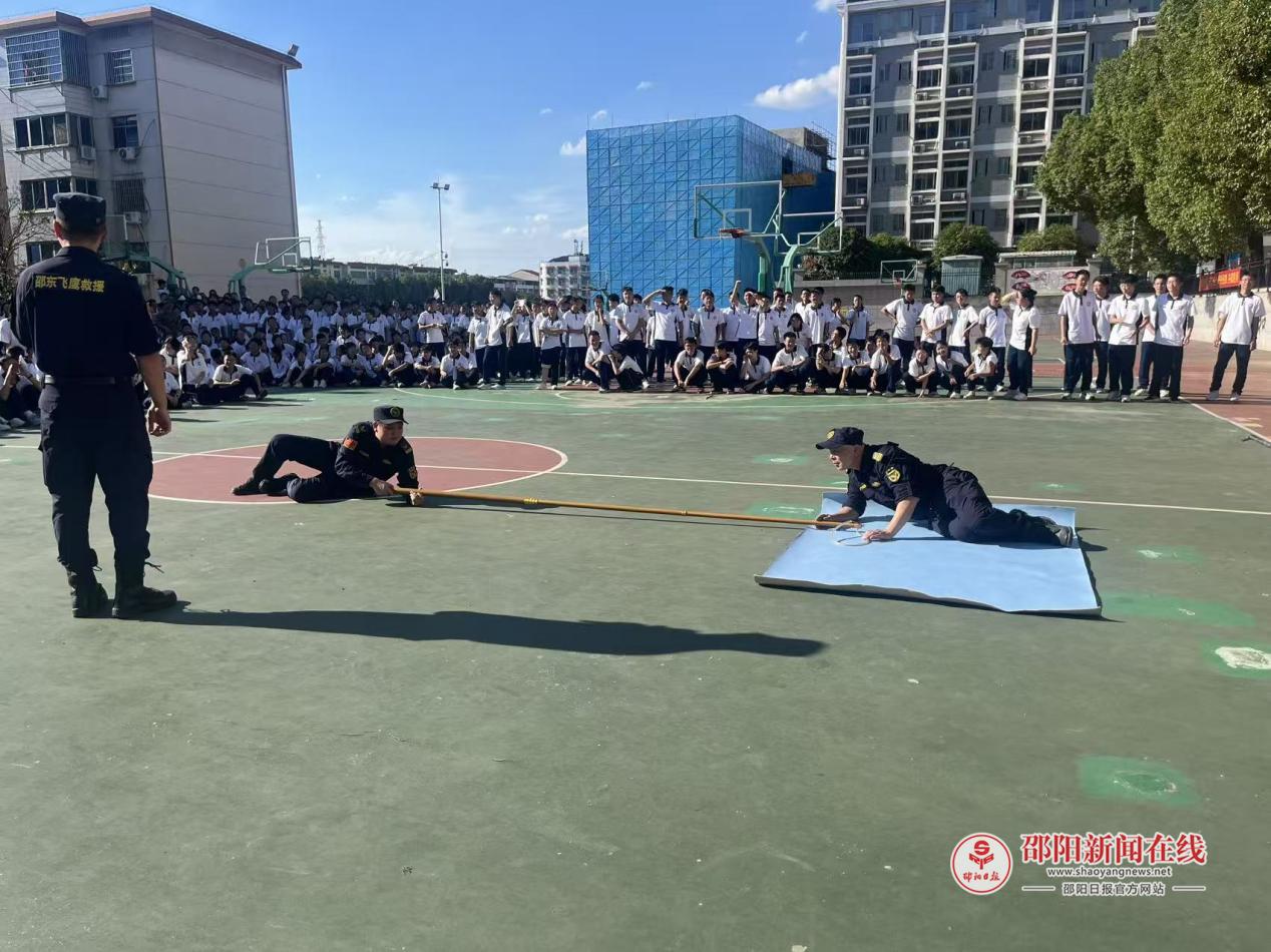 演练结束后,学校特邀邵东飞鹰救援队为师生带来了一场生动而实用的安全教育实操培训,救援队宣讲员彭赞滨等专业队员担任主讲。