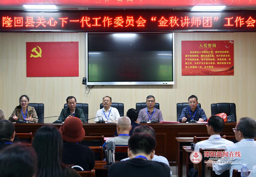隆回县有 2 万多名留守儿童,县关工委为助力留守儿童健康成长,长期组织 “金秋讲师团” 开展以隔代教育、红色教育、法治教育、科技创新教育为核心的宣讲,紧扣立德树人根本任务,引导青少年树立远大志向,为建设现代化新隆回贡献力量。