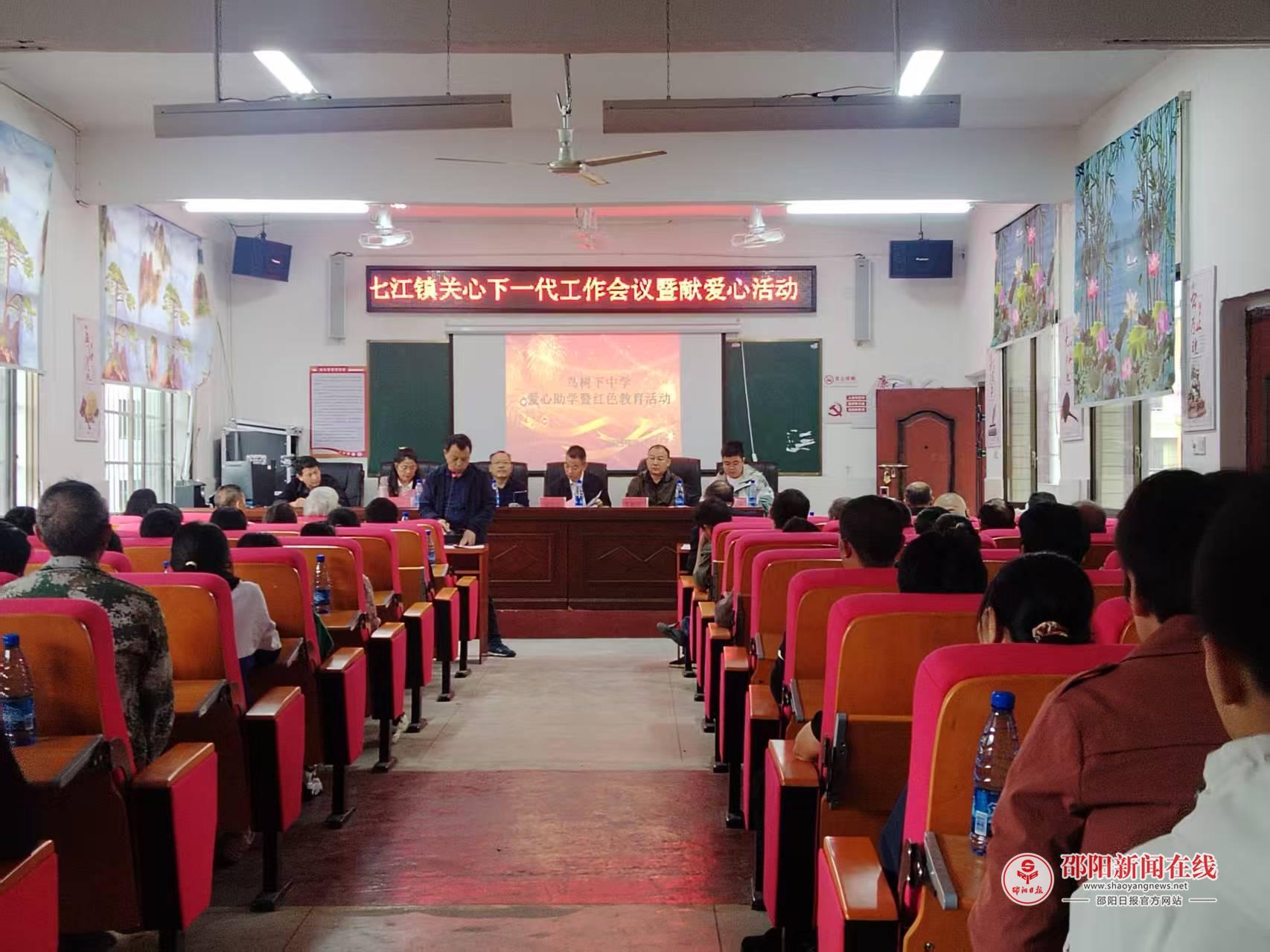 邵阳日报·邵阳新闻在线讯(通讯员 刘茂春 郑爱贤)9月25日上午,隆回县七江镇关心下一代工作会议暨献爱心活动在七江镇鸟树下中学大会议室隆重举行,隆回县关工委、县新华书店,七江镇政府,七江镇中心校等单位相关领导及鸟树下中学一部分品学兼优的学生和孩子家长参加了此次活动。
