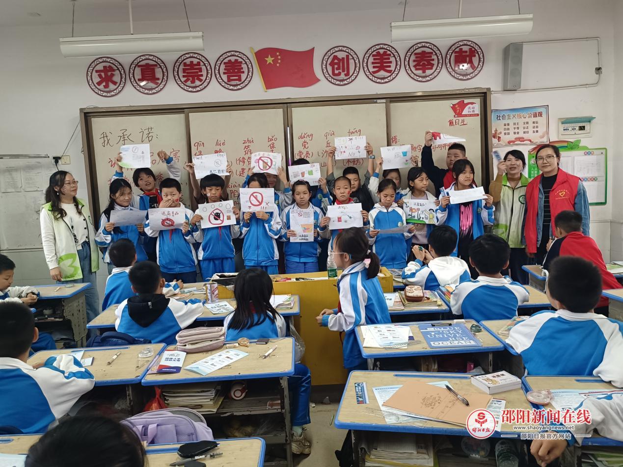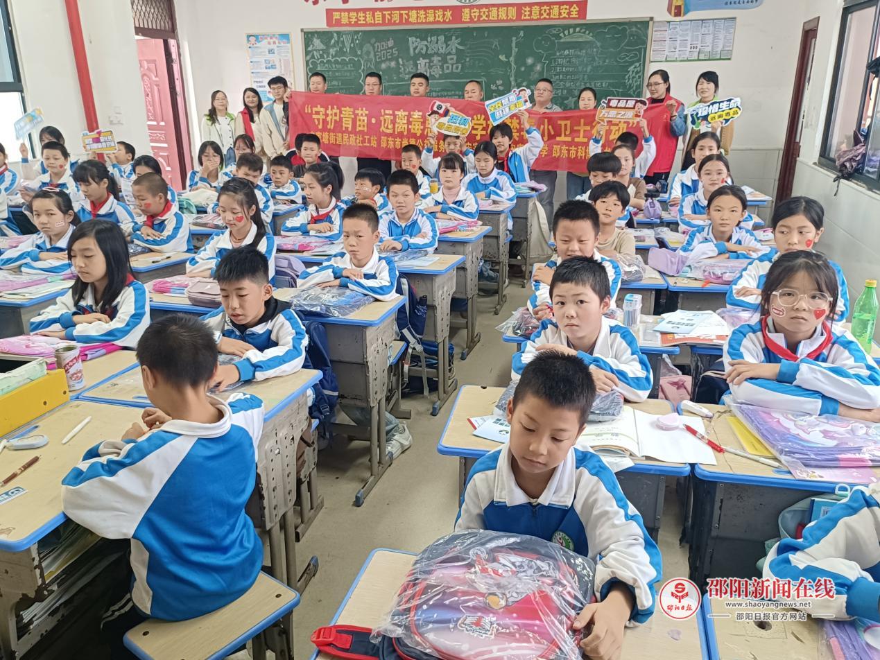 邵阳日报·邵阳新闻在线讯(通讯员 李艳)9月24日,在邵东市民政局指导、邵东市科博豪书包厂赞助下,邵东市宋家塘民政社工站联合宋家塘社区,于宋家塘小学五年级 27 班开展 “守护青苗,远离毒患” 禁毒宣传教育活动。3 名社工、8 名社区志愿者与辅警及 55 名师生参与活动。
