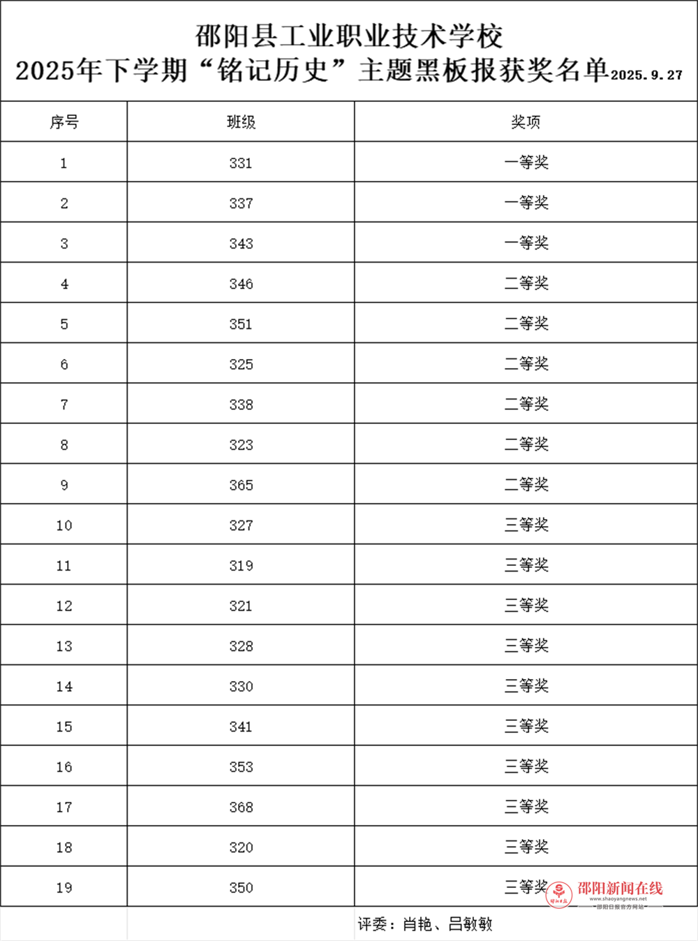 经老师们共同评审,以“铭记历史,砥砺前行”为主题的黑板报评比结果如下: