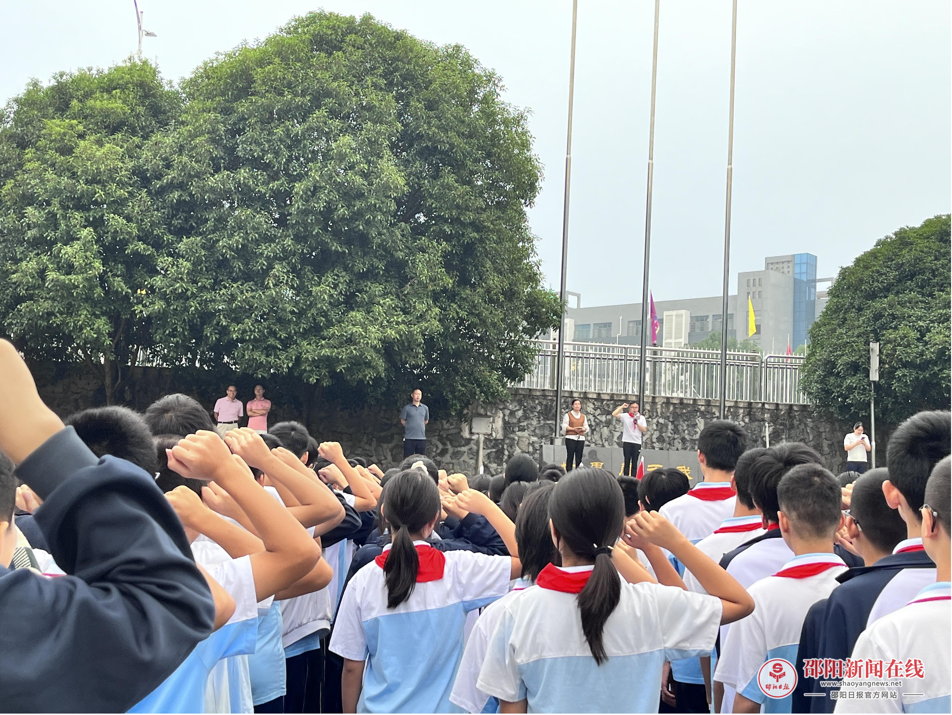 邵阳日报·邵阳新闻在线讯(通讯员 林丹)10月13日,在中国少年先锋队建队76周年纪念日当天,武冈市第二中学七年级、八年级全体中队辅导员与少先队员,分别在学校足球场、篮球场整齐列队,参加“国旗下的讲话”主题集会,以庄重仪式传承少先队精神。