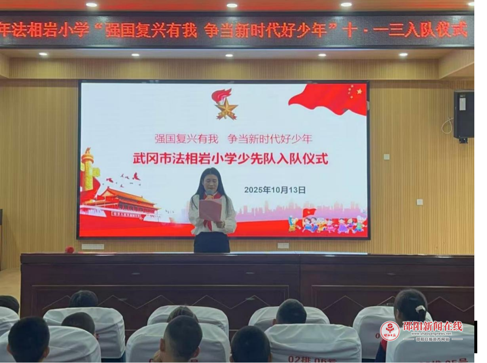 邵阳日报·邵阳新闻在线讯(通讯员 戴朝晖 郑文娟)10月13日,武冈市法相岩小学举行“强国复兴有我 争当新时代好少年”十·一三入队仪式,106名新队员光荣加入中国少年先锋队,开启了他们在少先队组织中的成长新征程。