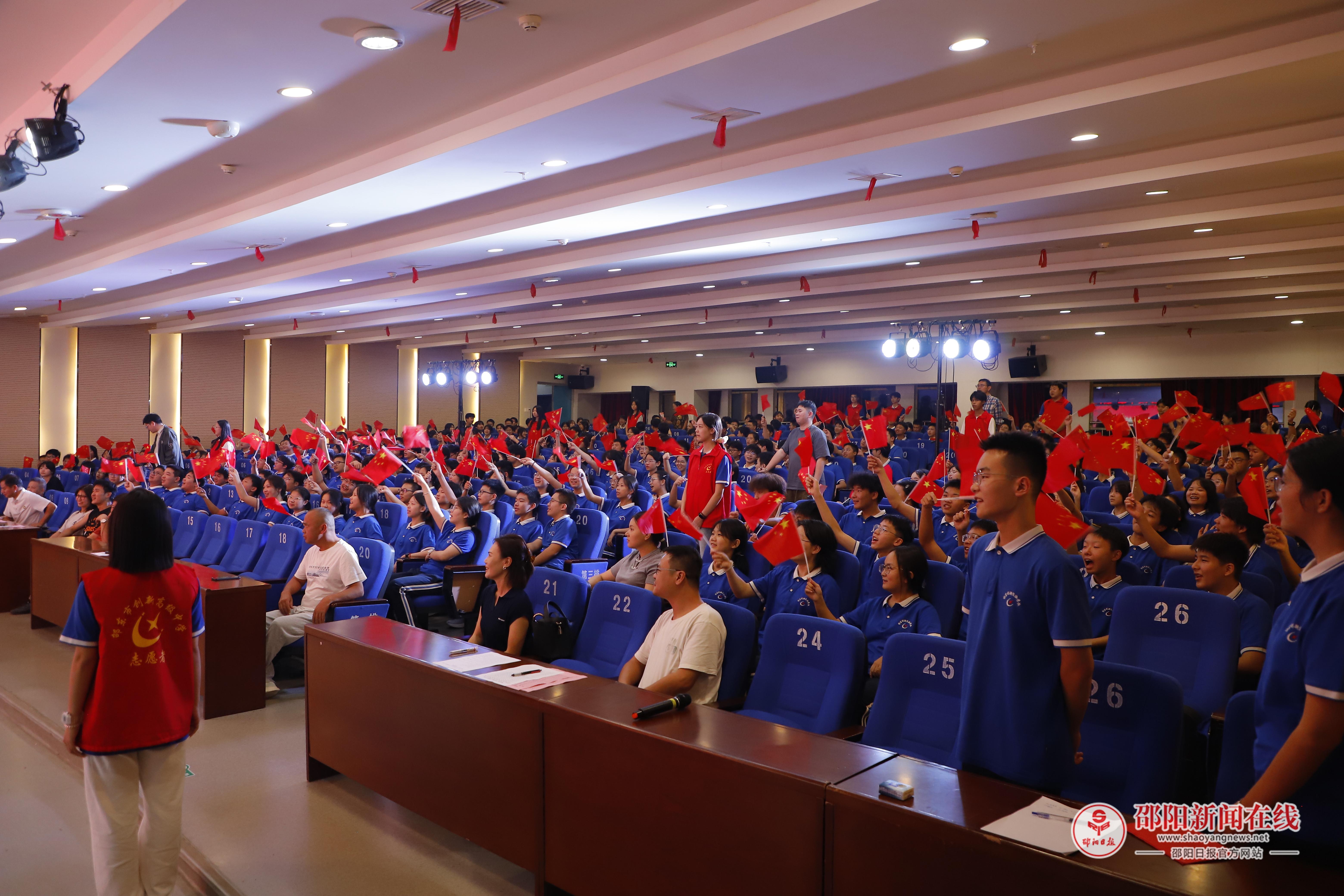 副校长罗振宇致开场辞,寄语学子以歌声传爱国精神、展青春之姿,引发共鸣。随后,全体高一学生齐唱《爱我中华》,传递爱国情怀。