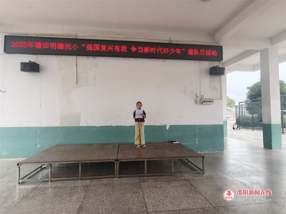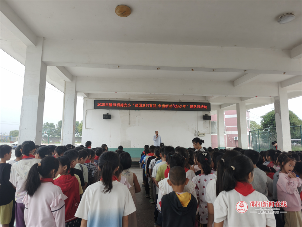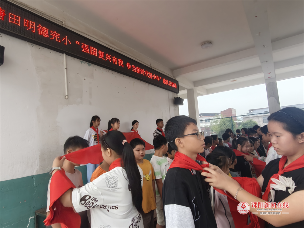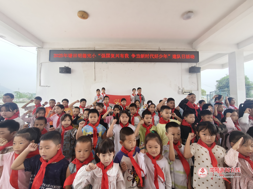 邵阳日报·邵阳新闻在线讯(通讯员 欧阳靓)为庆祝中国少年先锋队建队76周年,传承红色基因,增强少先队员的光荣感与使命感,10月13日,武冈市龙溪镇塘田明德完全小学举行了“十·一三”建队日主题活动,全体师生齐聚操场,共同见证新队员加入少先队的光荣时刻。