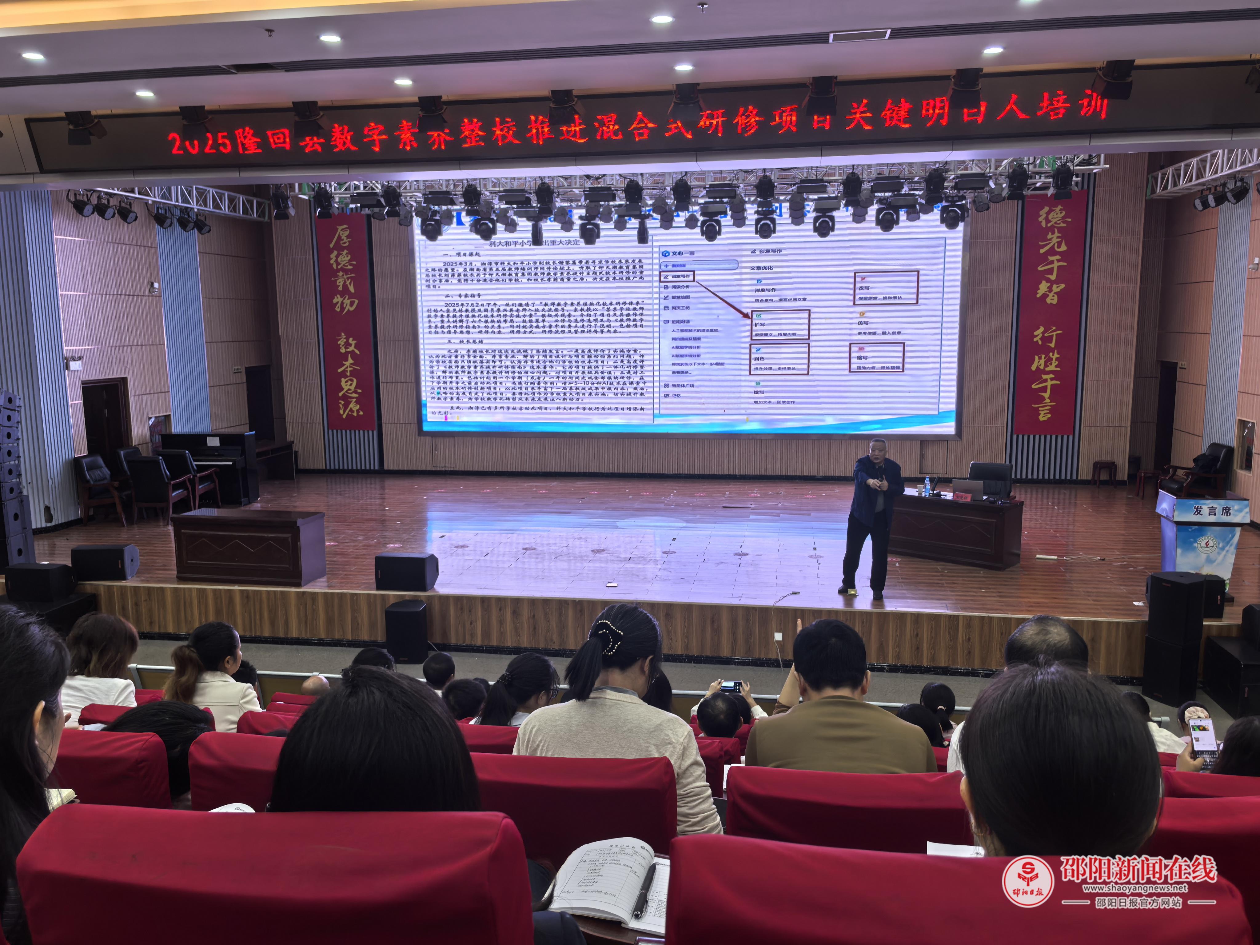 邵阳日报·邵阳新闻在线讯(通讯员 马霞娟)10月14日上午,隆回县教师数字素养模块化研修整校推进项目关键明白人培训在思源实验学校启幕。培训由教师进修学校组织,该校培训处主任郭艳主持,湘潭市教育学院宋见林教授主讲,县教师进修学校全体教师及桃花坪街道中心学校、万和实验学校、九龙学校、思源实验学校、滩头镇中心学校等5所项目学校“关键明白人”参训。