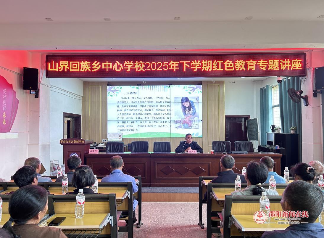 邵阳日报・邵阳新闻在线讯(通讯员 陈慧丽 刘水贞)10月15日,隆回县山界回族乡中心学校在罗白九年义务制学校举办红色教育专题讲座,特邀县关工委、县作协会员主讲,旨在厚植青少年爱党爱国情怀,引导学生传承红色基因、坚定理想信念。