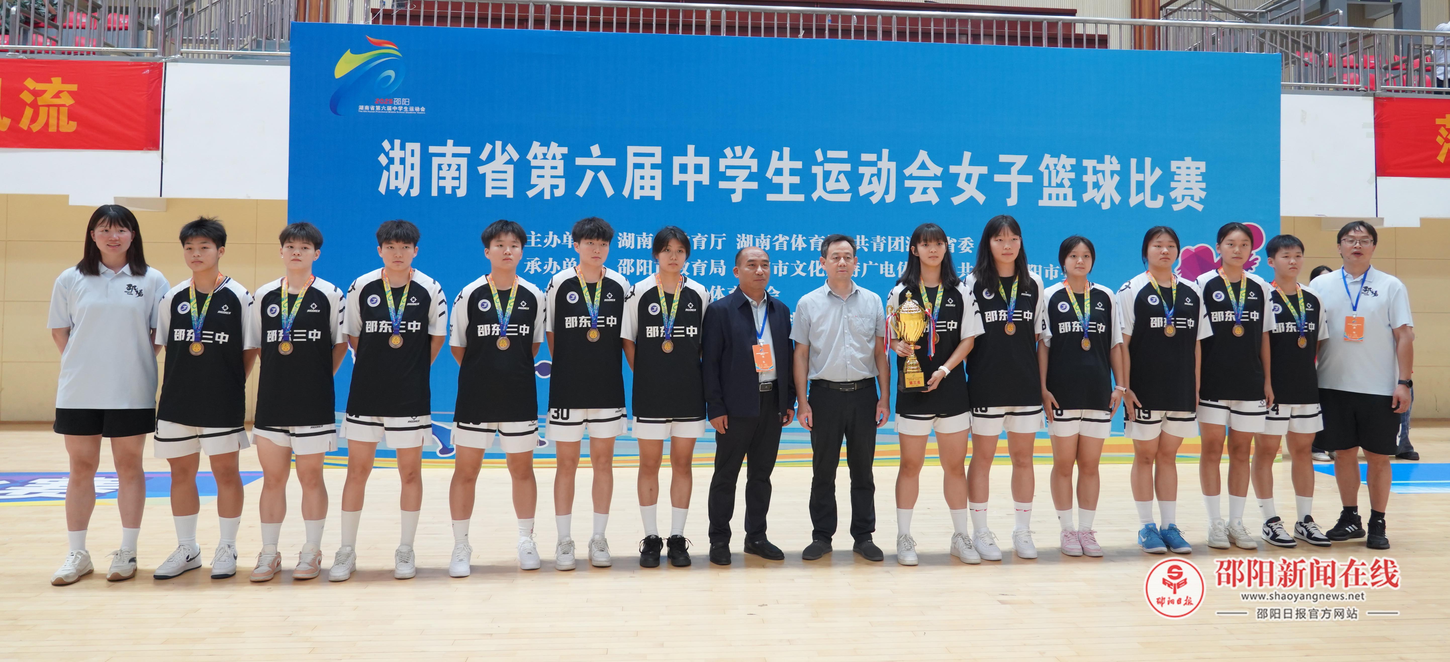 邵阳日报·邵阳新闻在线讯(通讯员 黄丹)10月9日至17日,湖南省第六届中学生运动会篮球比赛在邵阳市举行。邵东市第三中学女子篮球队作为邵阳市代表队参赛,最终斩获女子组第三名,为邵阳市赢得荣誉。
