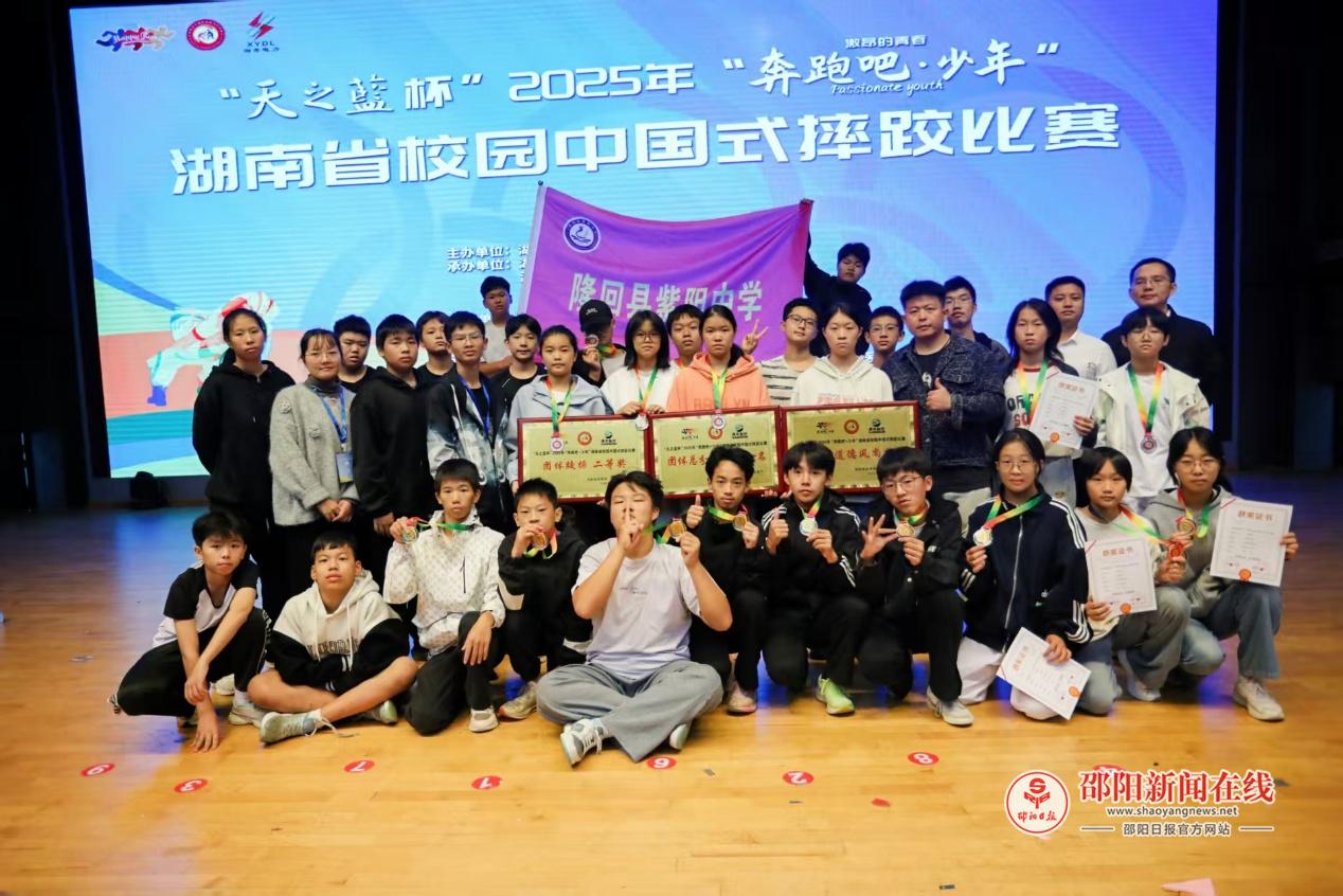 邵阳日报·邵阳新闻在线讯(通讯员 邹慧娟 陈端毅)10月17日至19日,由湖南省体育局、湖南省教育厅联合主办的2025年“天之蓝杯”湖南省校园中国式摔跤比赛,在湘乡二中顺利落幕。隆回县紫阳中学组队参赛,面对全省各地校园的优秀对手,队员们敢打敢拼、奋勇争先,最终以亮眼表现斩获多项荣誉,为学校、为隆回县赢得荣光。