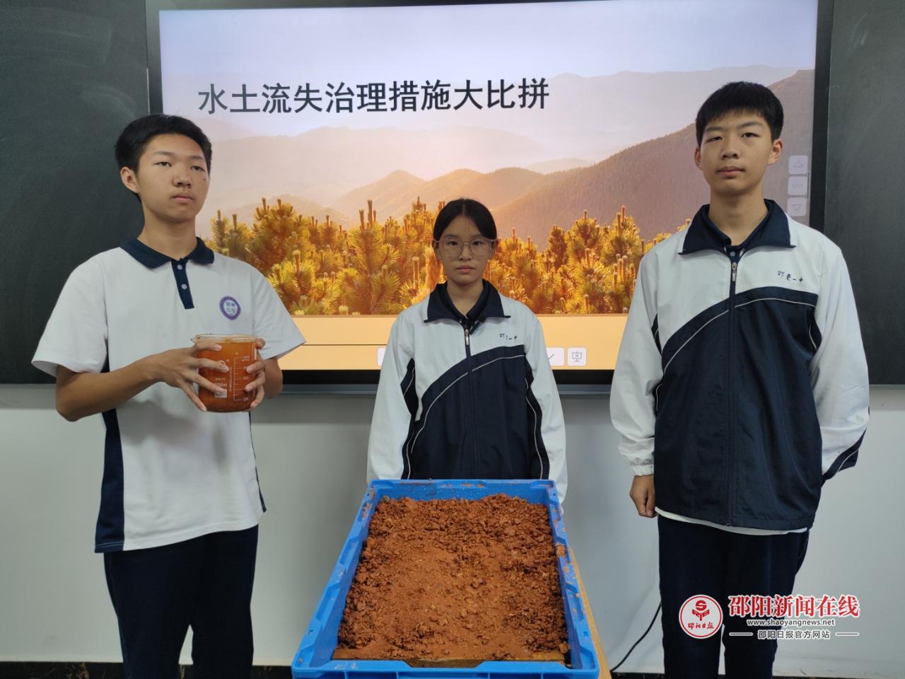 参赛学生聚焦“生态修复与治理”,结合邵东本地实际,走出校园实地考察,提交12件科普实验作品。经教师评审团从科学性、创新性等维度评审,3件佳作脱颖而出,将代表学校参加省级大赛: