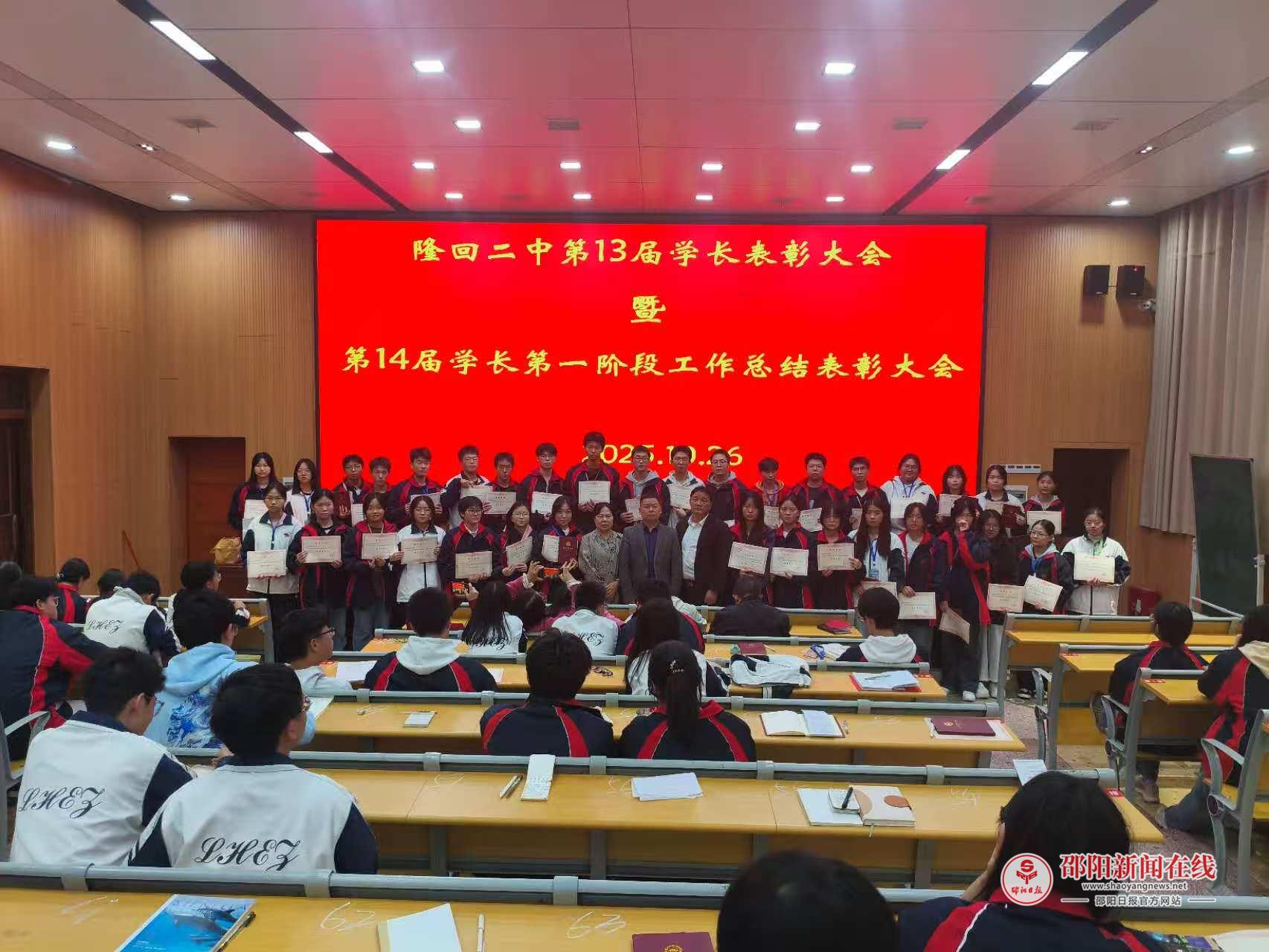 邵阳日报·邵阳新闻在线讯(通讯员 刘剑 王化贤)10月26日晚上,隆回县第二中学召开第 13 届学长表彰暨第 14 届学长第一阶段总结会,相关管理人员与全体学长参会。学长制是该校助力新生快速适应高中生活的重要举措。