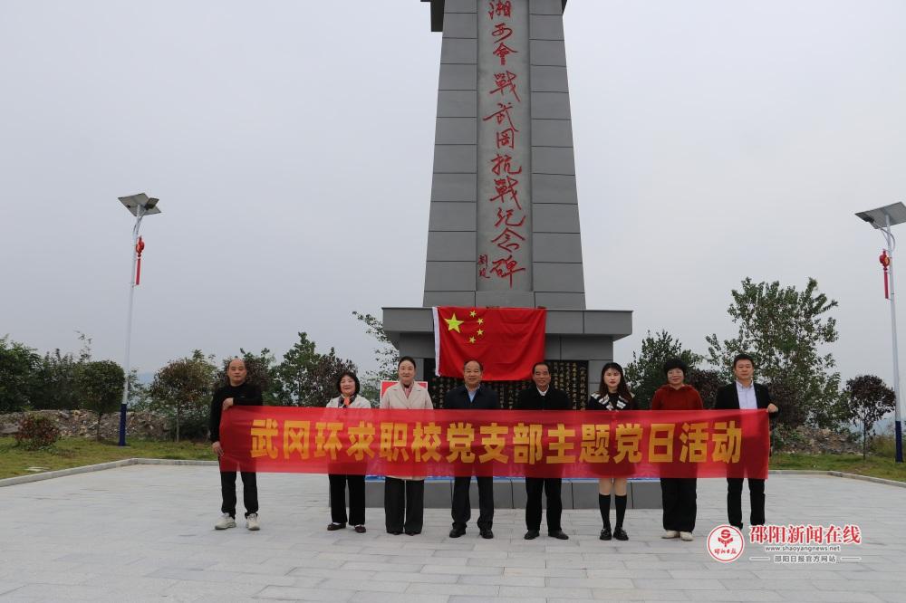 邵阳日报·邵阳新闻在线讯(通讯员 戴芳华)10月26日上午8时30分,武冈市迎春亭街道荷塘小镇上空乌云低垂,似在为往昔烽火岁月凝注深沉哀思。武冈市环求职业技术学校党支部带领全体党员,专程前往扶冲战斗遗址(荷塘村)湘西会战武冈抗战纪念广场,开展“缅怀抗战英烈·传承红色基因”主题党日活动,以庄重仪式深切缅怀革命先烈,大力弘扬爱国主义精神。