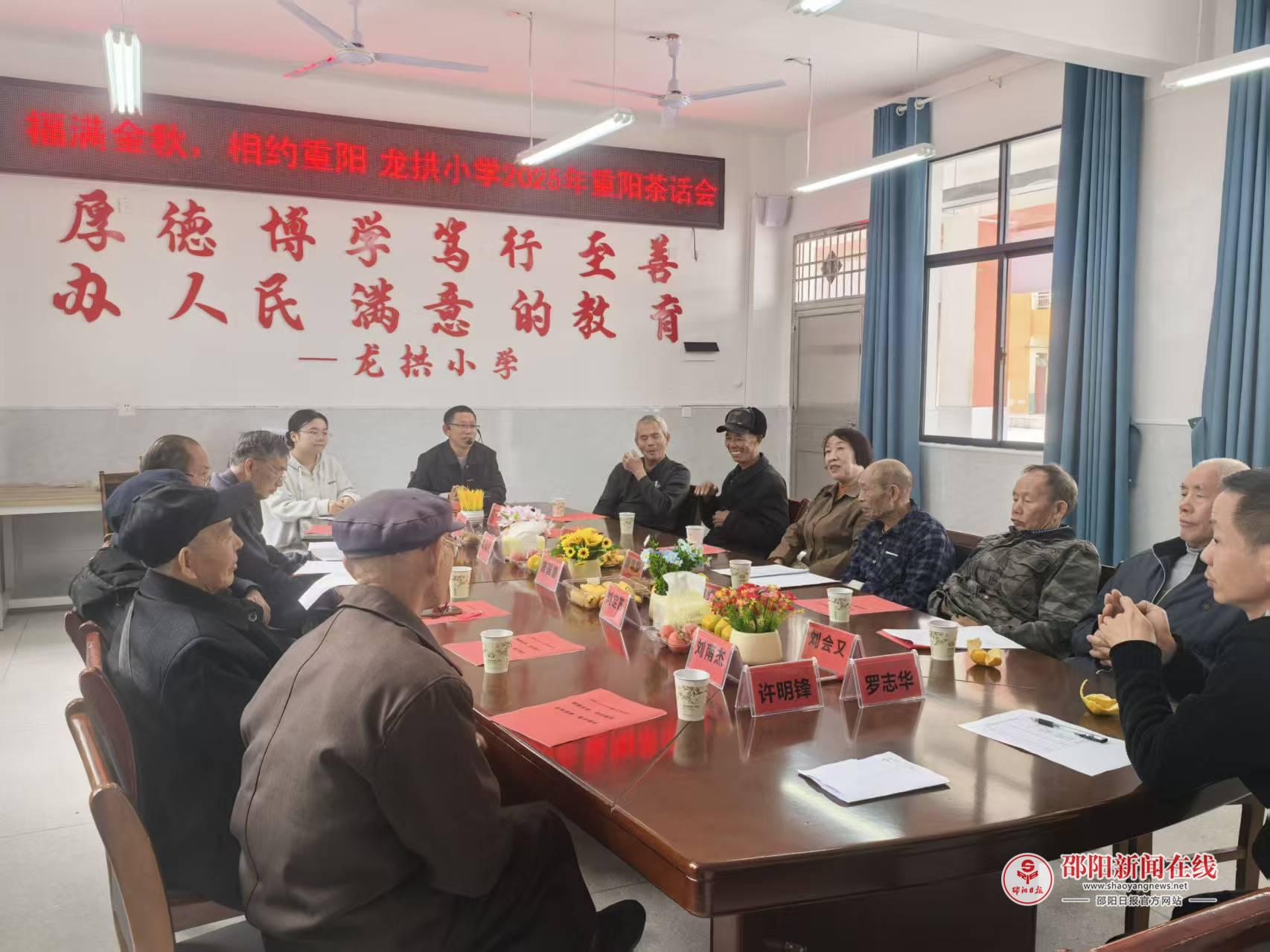 邵阳日报·邵阳新闻在线讯(通讯员 方怡笔 许明锋 戴颖洁)10月29日,隆回县龙拱小学在学校会议室隆重举行了“福满金秋,相约重阳”退休教师茶话会。12位曾经在学校辛勤耕耘的退休老教师重返校园,欢聚一堂,共话往昔情深,共绘教育未来。