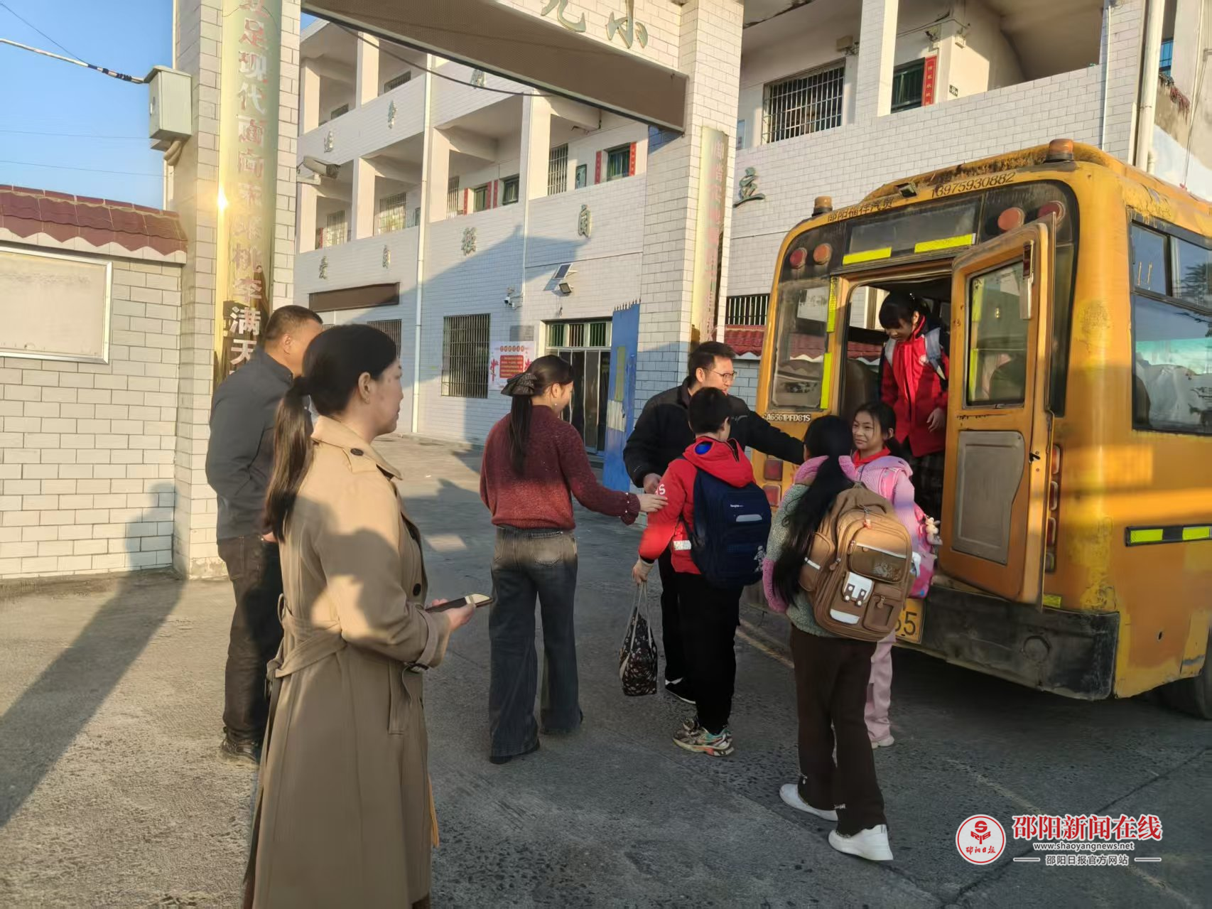 邵阳日报·邵阳新闻在线讯(通讯员 林素)11月14日清早,洞口县水东镇文田完全小学门口,校长已带着教师护学队伍守在校车旁:帮学生拎稳书包、引导有序下车、叮嘱“进教室先交作业”,晨光里的值守透着暖意。