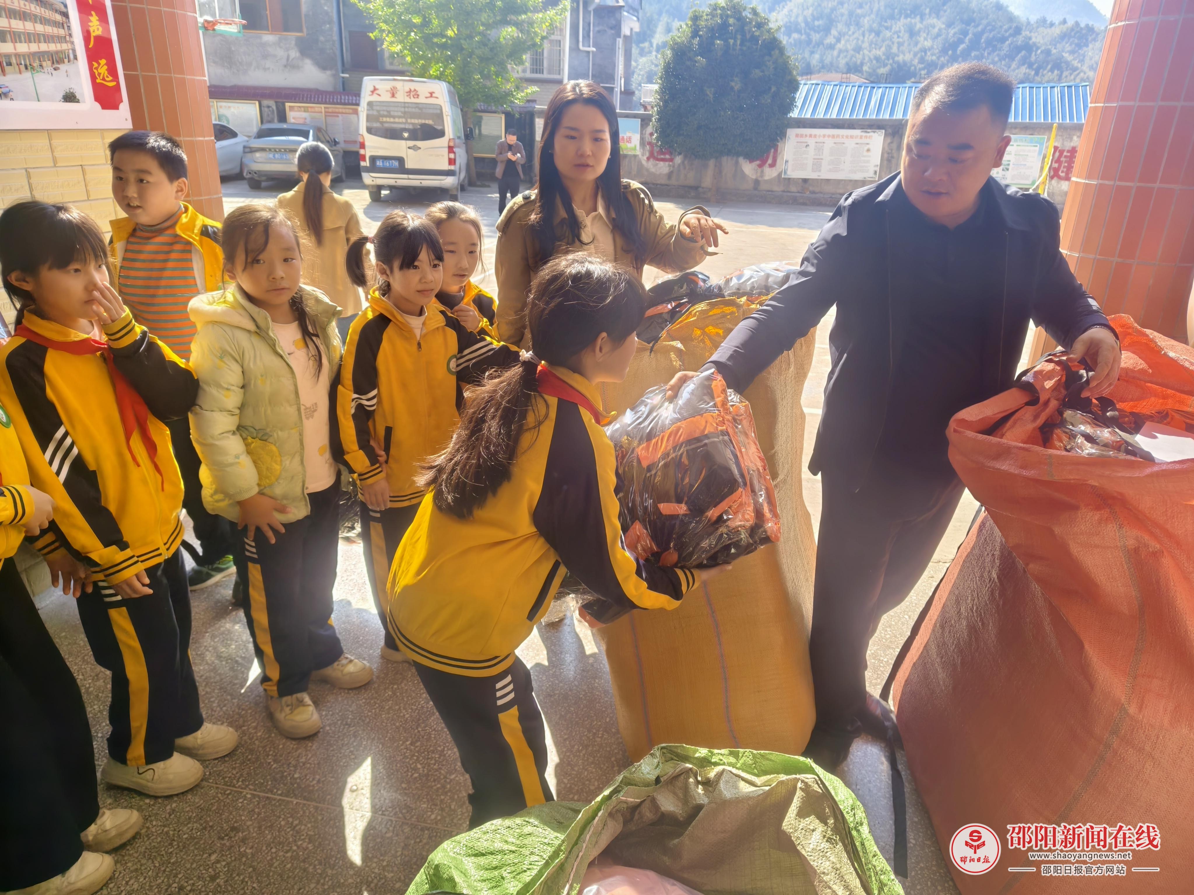 隆回县楚鑫制衣有限公司董事长、县服装制造行业商会会长、隆回县矿业协会常务副会长欧阳楚书回到母校,开展一场温馨的捐赠活动。他为全校学生带来了两套黑色冬季校服,同时为每位教师准备了两套粉红色工作服,展现对乡村教育的深切关怀。