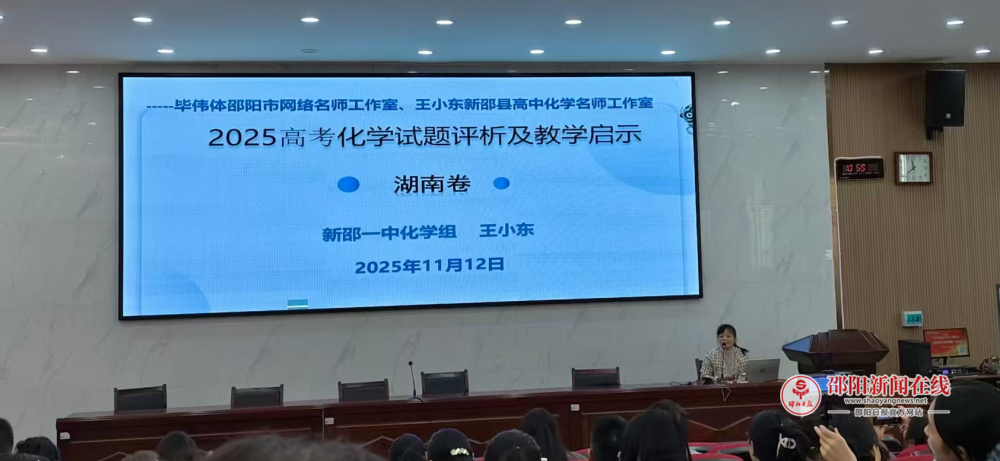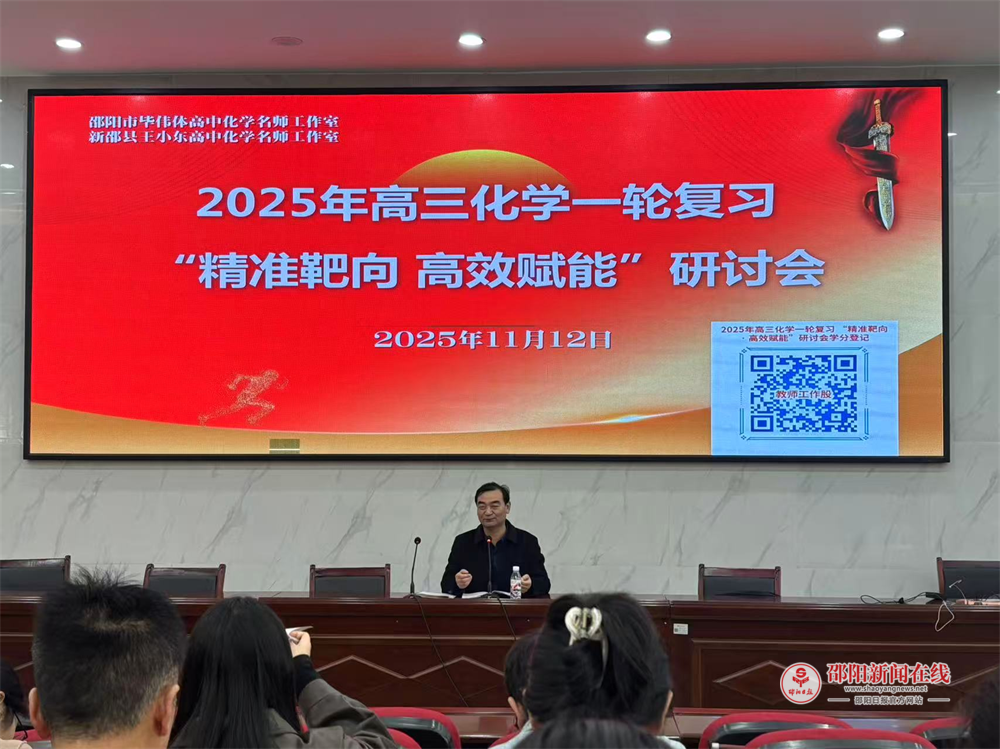 为深入探讨2026届高三化学一轮复习的有效路径,明确高考方向,提升复习备考的针对性和高效性,11月12日,邵阳市毕伟体高中化学名师工作室与新邵县王小东高中化学名师工作室在新邵县第一中学联合举办“精准靶向·高效赋能”高三化学一轮复习研讨会。邵阳市各区县的高中化学名师工作室成员、骨干教师齐聚一堂,通过示范课展示、专题研讨、专家引领等形式,共探高考复习提质增效新路径。