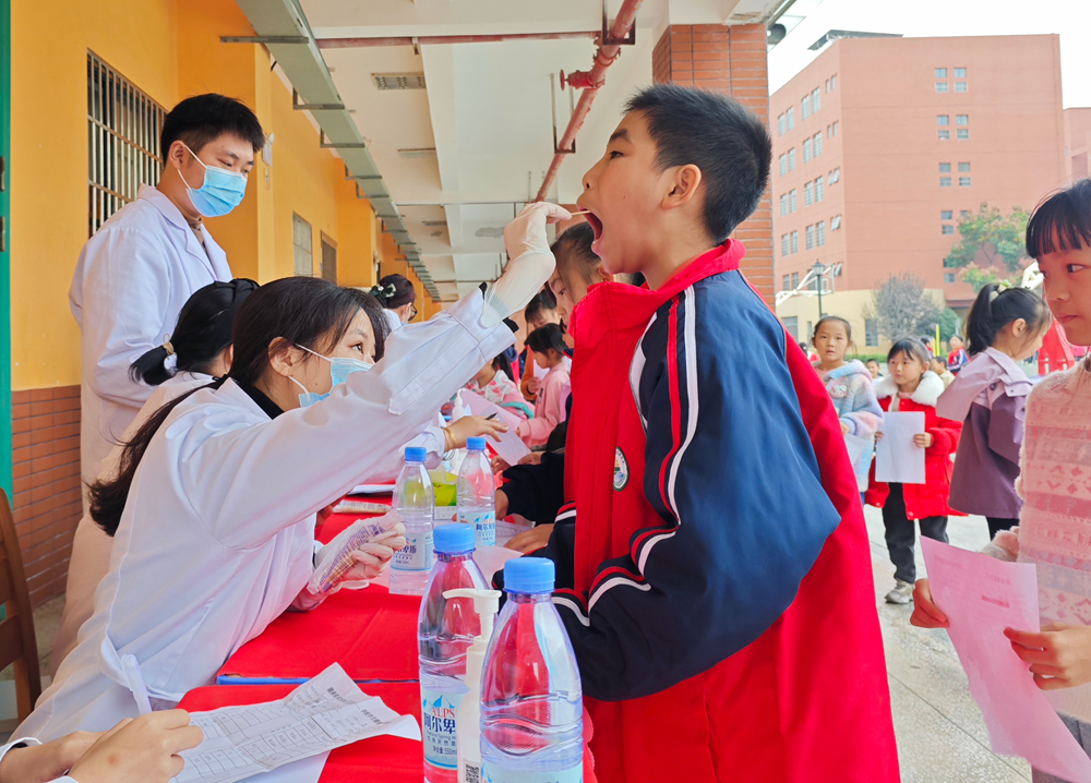 在视力检测和心肺听诊区域,该院医护人员轻声引导,学生们也积极配合,现场秩序井然。针对低年级学生可能存在的紧张情绪,老师们还全程陪伴,用鼓励的话语缓解孩子们的不安,让体检在轻松的氛围中顺利完成。截至15时,该校一年级至九年级4700余名学生全部完成身高体重、五官、视力等7个项目的体检(一、二年级不测血压、肺活量)。