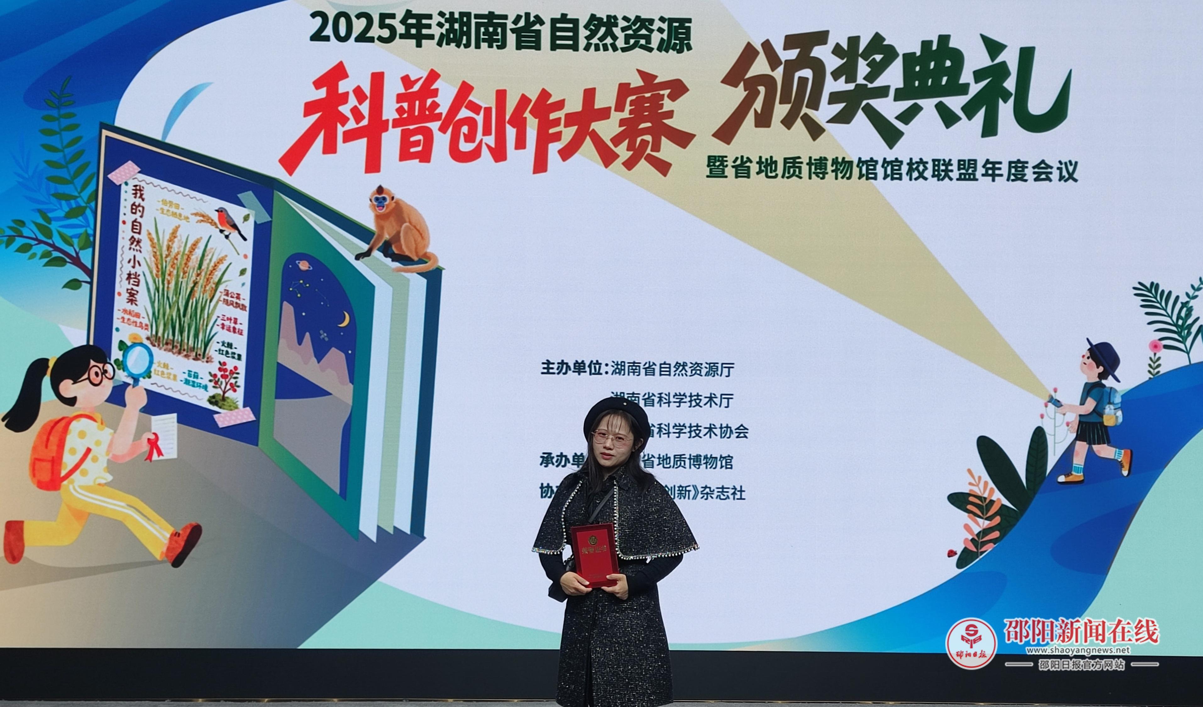邵阳日报·邵阳新闻在线讯(通讯员 王归 郭宇)11月18日,2025年湖南省自然资源科普创作大赛颁奖典礼暨省地质博物馆馆校联盟年度会议在长沙举行,邵东市第一中学(以下简称“邵东一中”)作为获奖学校代表受邀参加本次会议。