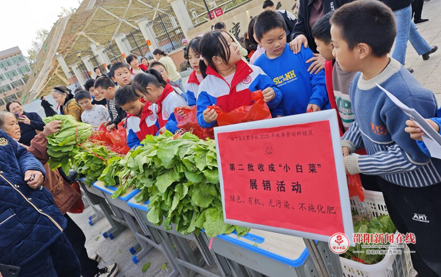 邵阳日报·邵阳新闻在线讯(通讯员 吴立鹏)11月20日下午,绥宁县芙蓉学校校门口人声鼎沸,热闹非凡。该校举行2025年秋季劳动种植区“第二批蔬菜收成”展销活动,二三年级分管的16-24号白菜地迎来了丰收时刻,一颗颗鲜嫩的小白菜成为活动现场的“明星产品”。
