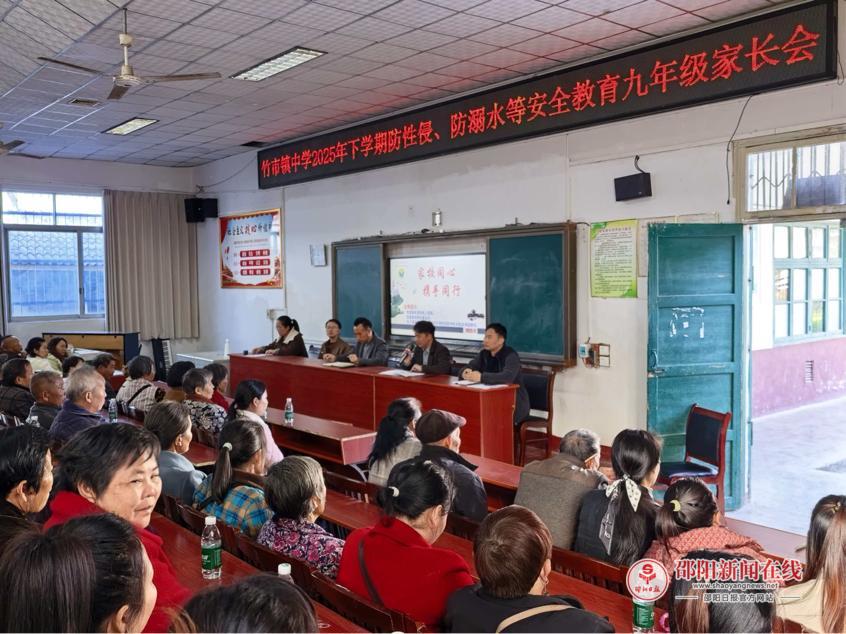 邵阳日报·邵阳新闻在线讯(通讯员 付文君 林世伟)11月25日,洞口县竹市镇中学组织召开2025年下学期九年级家长会。大会以“家校携手共育,筑牢安全防线”为主题,聚焦安全教育与中考备考。